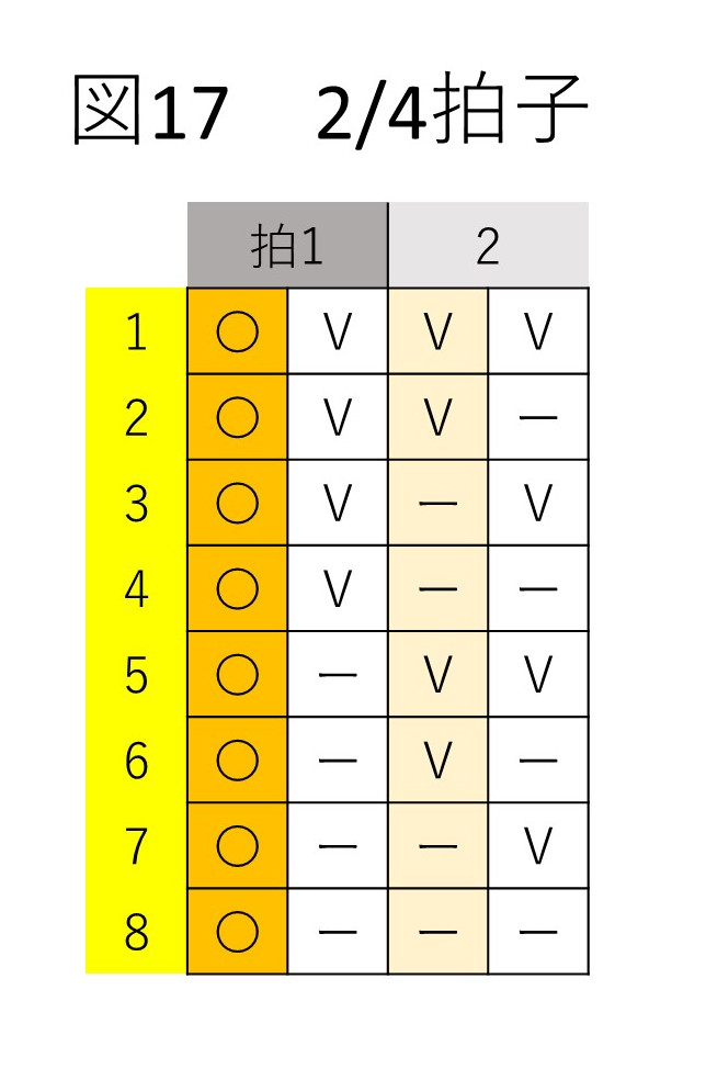 2拍子(図17) 8分音符x4 23=8