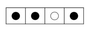 ④ 4番目の小節は小休止節とします。小休止節には②で選んだ音パターン以外の音パターン(ここでは上記の音パターンの4番)をのせます。そして、小休止節の最後の拍は(・)とします。これで最初の小楽節が完成です。