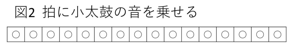 各拍に小太鼓の音(〇)を乗せました(図2)。声ではタと読みます。