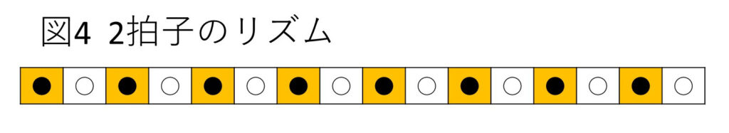 2拍子(図4) 2拍ごとに大太鼓の音がのる小節からなる曲。