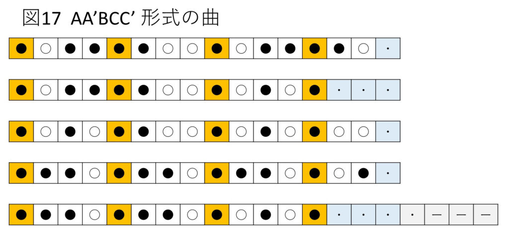 ④ AA’BCC’形式の曲(図17)(A + A’ )+ B +(C + C’)