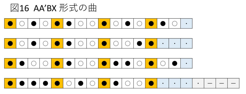 ③ AA’BX形式の曲(図16)(A + A’ )+ (B + X)
